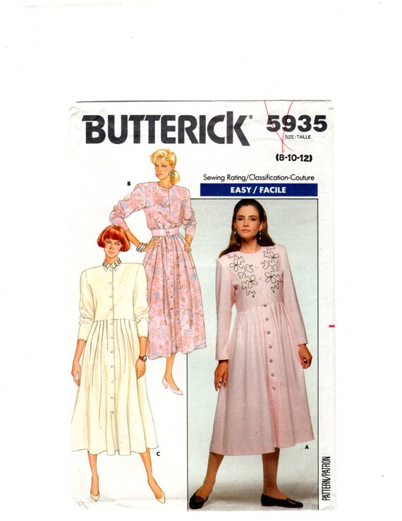1990s Dress Pattern New Look 6503 Princess Seam Front Button Fit Flare Dress Mini Midi Shirtdress Vintage Sewing Pattern B31 1 2 40 Ff Button Front Dress Pattern Vintage Dress Patterns Summer Dress Patterns